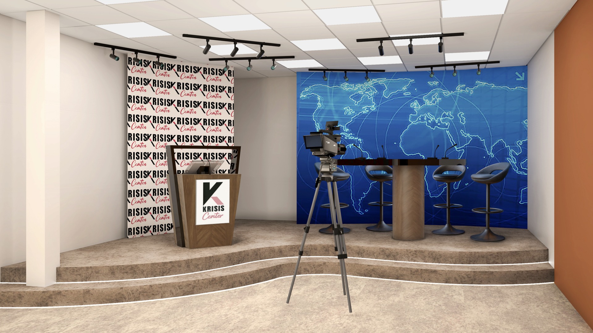 Équipée d’un plateau TV professionnel, d’un espace conférence de presse et d’un espace interview journaliste, la salle de media-training reproduit les conditions d’une interview en situation sensible.